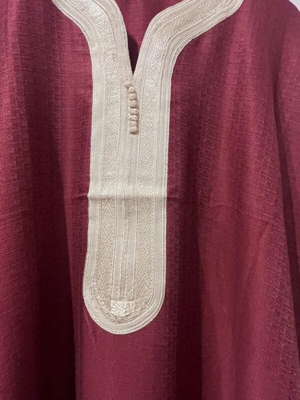 Our Moroccan gandoura for men kaftan features an embroidered design around the neck, down the chest. It has one slit on side and one pocket on the other side at the waist level. Very elegant et practical and so comfortable.